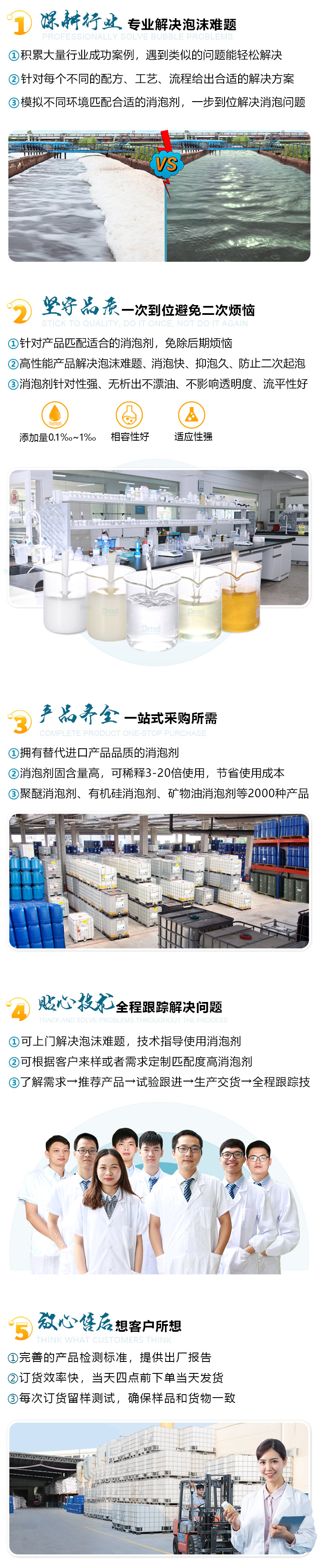 多年來公司面向市場,面向真實(shí)各行業(yè)客戶現(xiàn)場,對水處理消泡劑、工業(yè)消泡劑、有機(jī)硅消泡劑、發(fā)酵行業(yè)、清洗劑行業(yè)、金屬加工行業(yè)、造紙行業(yè)、建材行業(yè)、水性粘合劑行業(yè)、紡織印染行業(yè)、油田行業(yè)、水性涂料行業(yè)、印刷材料行業(yè)、電廠脫硫行業(yè)、工業(yè)清洗行業(yè)、家用化學(xué)品行業(yè)、采礦選礦工行業(yè)等32個(gè)行業(yè)工藝、流程及產(chǎn)品配方深入了解,對各行業(yè)消泡劑應(yīng)用了如指掌,給能客戶提供合適的解決方案,所研發(fā)生產(chǎn)消泡劑適應(yīng)客戶需求和市場需要,能輕松解決客戶遇到的難以解決的消泡難題,減少了客戶使用消泡劑的成本。公司依托完善的售前、售中及售后服務(wù),全程技術(shù)跟進(jìn)消泡劑的試樣到使用過程,節(jié)省了時(shí)間和成本,贏得了業(yè)界各類客戶們的贊譽(yù)!